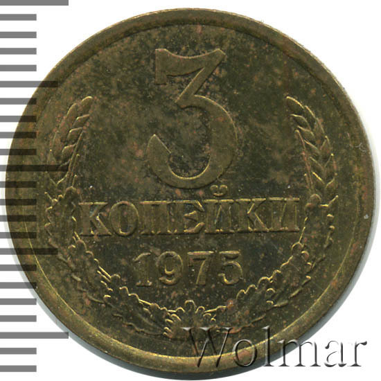 Аверс монеты 3 копейки 1975 года