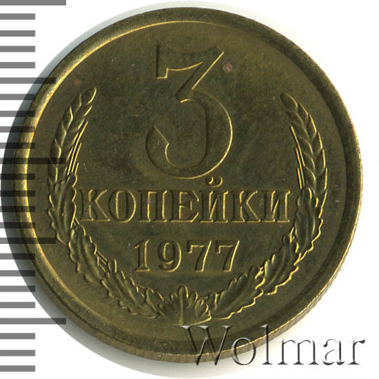 Реверс монеты 3 копейки 1977 года
