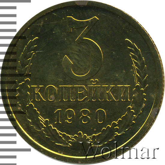 Реверс монеты 3 копейки 1980 года
