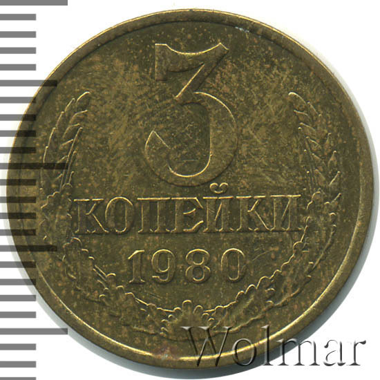 Для ознакомления с текущей стоимостью 3 копеек 1980 г. с лицевой стороной шт. 2, во вкладке "стоимость монеты" приведены статистические данные, построенные на основе прошедших аукционов. По ним Вы можете узнать актуальную в данный момент цену этой разновидности трёх копеек 1980 года в различной сохранности.