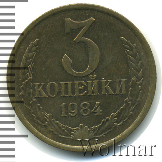 Аверс монеты 3 копейки 1984 года