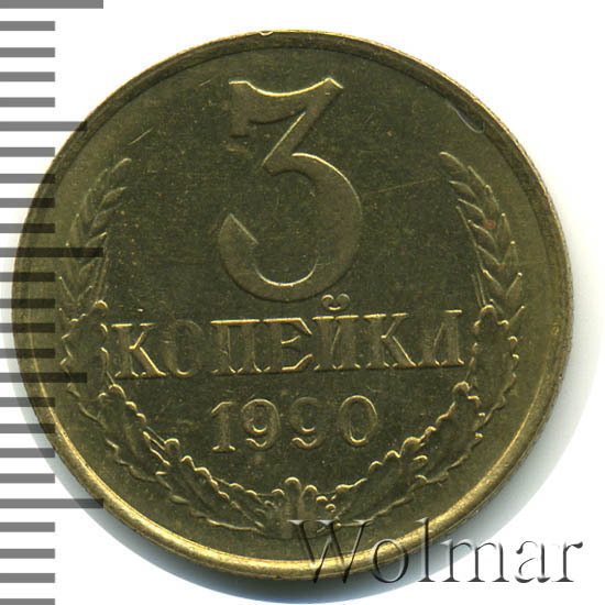 Цена на монету 3 копейки 1990 года на сегодня, 18 декабря 2025 года