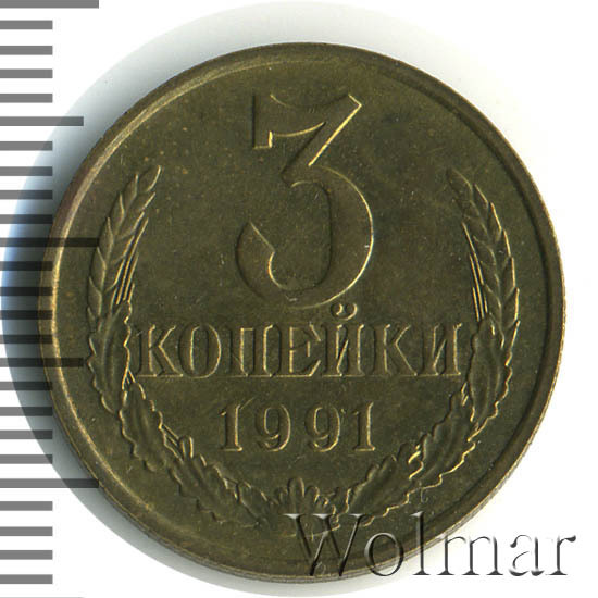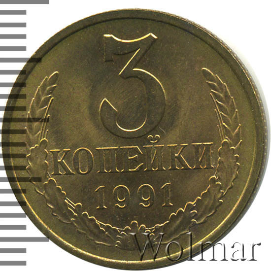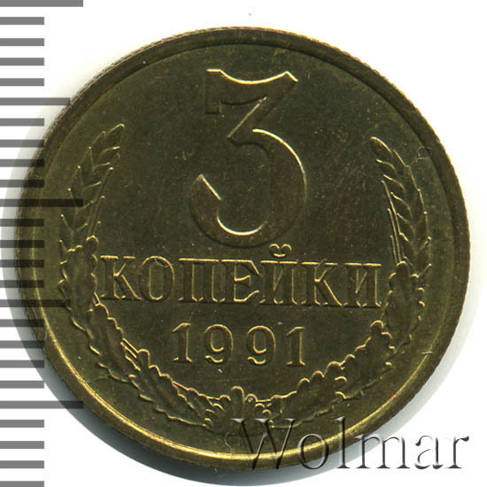 Реверс монеты 3 копейки 1991 года М