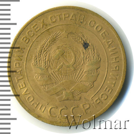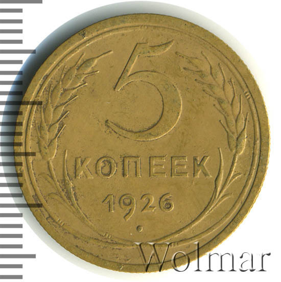 Пятачки 1926 чеканили из алюминиевой бронзы, весом ровно 5 грамм. Известны три разновидности, разнящиеся плоской или выпуклой поверхностью земного шара и длиной остей колосьев в гербе СССР. По цене обычные 5 копеек 1926 стоят примерно как серебряный полтинник этого года весом 10 грамм, а разновидности в хорошем состоянии ещё в два-три раза дороже. Подробнее разобраться с ценой 5 копеек 1926 поможет наш каталог.