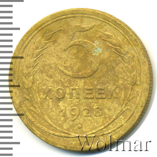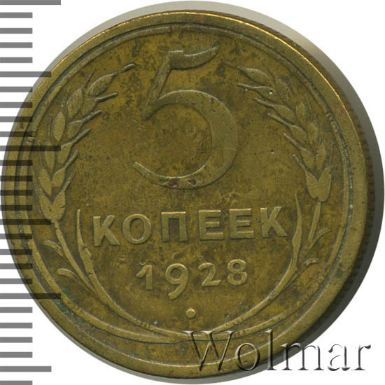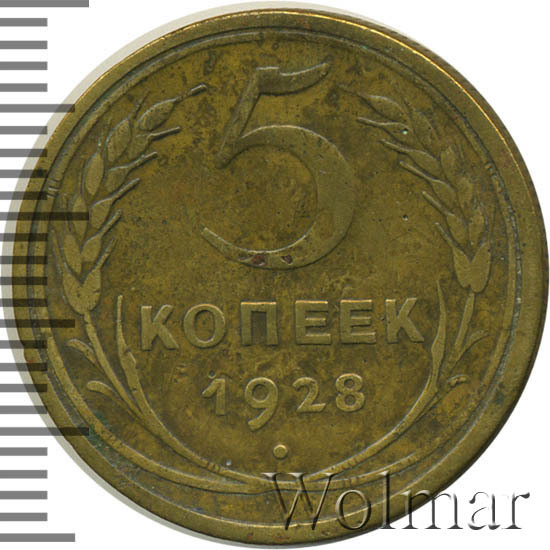 Пятак 1928 - пяти граммовая разменная монета из алюминиевой бронзы. Разновидностями данный номинал, увы, в этом году нас не порадовал, стоимость у 5 копеек средняя и конечно сильно отличается в зависимости от состояния и сохранности каждого конкретного экземпляра. Ниже расположен каталог цен, составленный по результатам торгов на популярных нумизматических интернет аукционах, по которому вы сможете более подробно ознакомиться со стоимостью 5 копеек 1928.