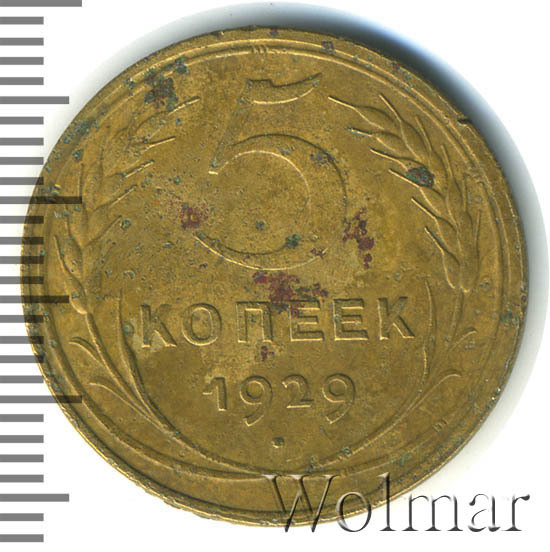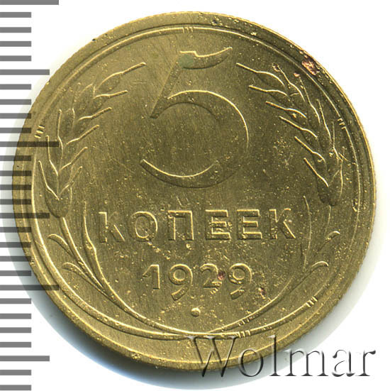 Цена 5 копеек 1929 г. в качестве UNC, может многократно превосходит стоимость этой монеты в среднем качестве. Известных штемпельных разновидностей, у пятаков этого года – две. Одна из них – шт. 1.1 (Ф№14П), встречается на монетах специального, полированного чекана. Произведён такой чекан 5 коп. 1929 г., специально для коллекционеров монет СССР. Полированный пятак имеет наивысшую степень редкости R5. Более подробно ознакомиться с ценой 5 копеек 1929 года, Вы можете во вкладке «стоимость монет», а так же принять участие в текущих интернет - аукционах, пройдя по вкладке «активные лоты».