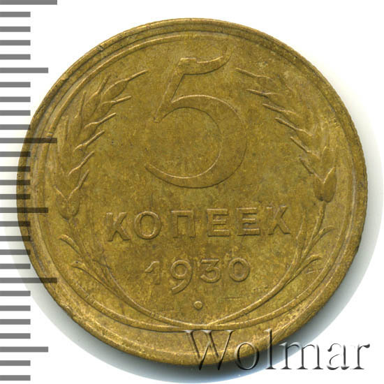 Узнать актуальную стоимость 5 копеек 1930г. можно на странице ниже, по нашему каталогу проходов и цен, отмеченных на торгах самых популярных нумизматических аукционов.