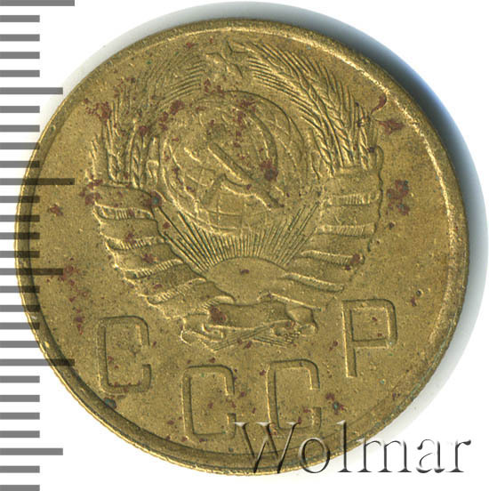 Пятачки в 1939 году чеканились из сплава алюминиевой бронзы и весили ровно 5 грамм. Стоимость 5 копеек 1939 средняя, зачастую зависит от состояния и привлекательности экземпляра. Коллекционерам известна разновидность 5 копеек с узким лезвием серпа на аверсе. Встречаются такие монеты примерно в два раза реже, по этому и цена на них вдвое больше, чем у обычных пятаков с широким лезвием серпа в гербе СССР. Более подробно ознакомиться с ценой 5 копеек 1939 года, Вы можете во вкладке "стоимость монет", так же Вы сможете принять участие в текущих нумизматических интернет - аукционах, во вкладке "активные лоты".