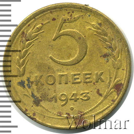 Цена на монету 5 копеек 1943 года на сегодня, 16 апреля 2026 года