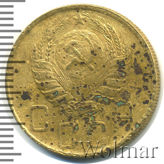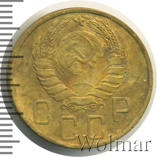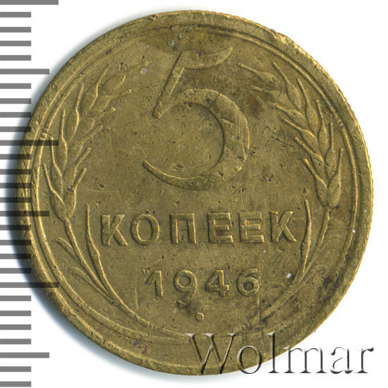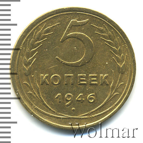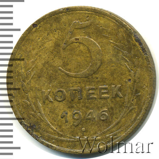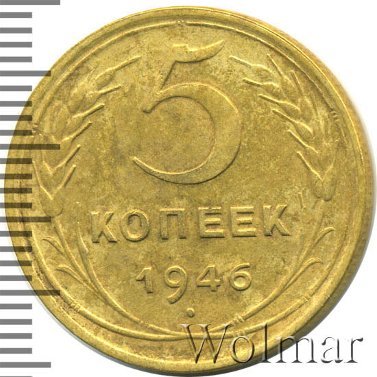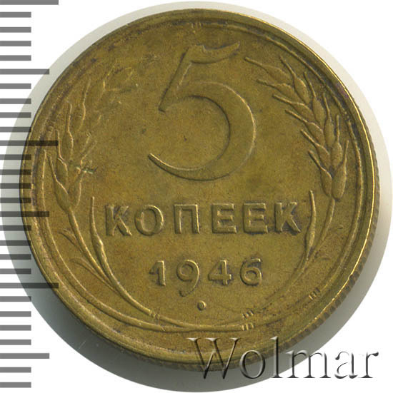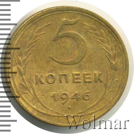 Узнать актуальную стоимость 5 копеек 1946г. можно на странице ниже, по нашему каталогу проходов и цен, отмеченных на торгах самых популярных нумизматических аукционов.