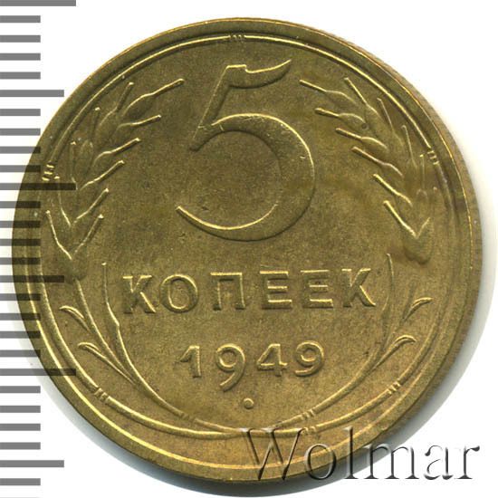 Ознакомится с ценой 5 копеек 1949 года, в различном коллекционном состоянии, Вы можете во вкладке "стоимость монеты", где приведены статистические данные, построенные на основе прошедших аукционов.