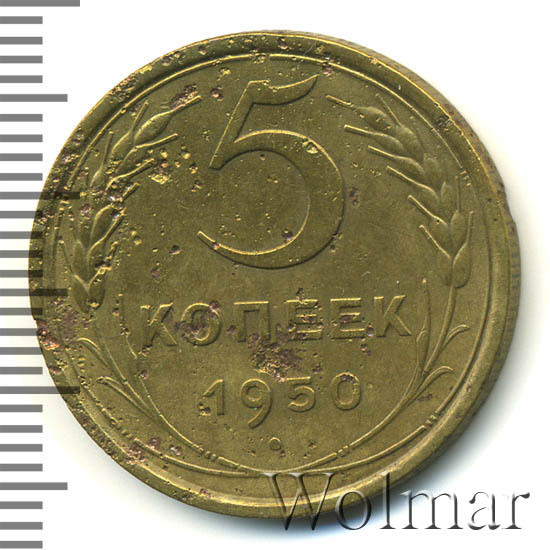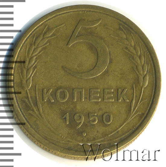- Вровень, выше или ниже? Стоимость 5 копеек 1950 года в зависимости от аверса