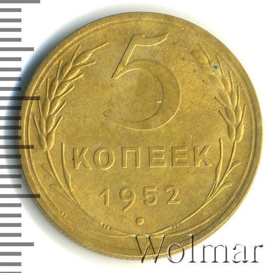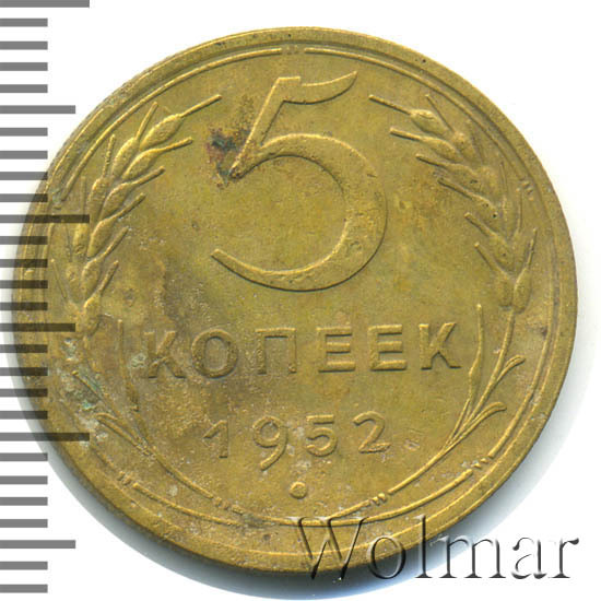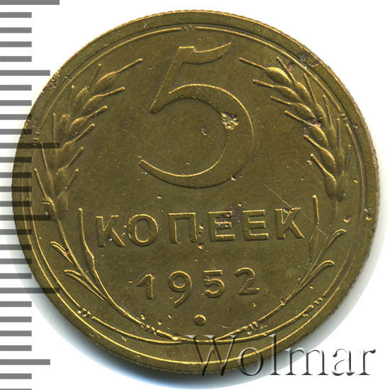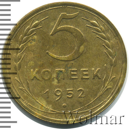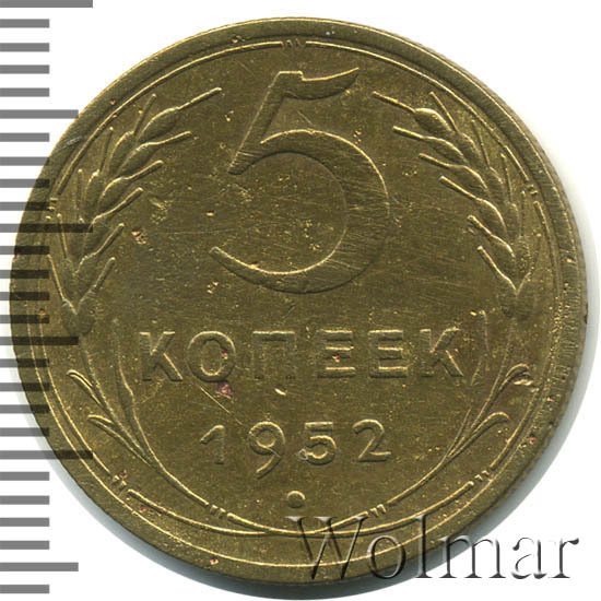 Цена на монету 5 копеек 1952 года на сегодня, 26 апреля 2026 года