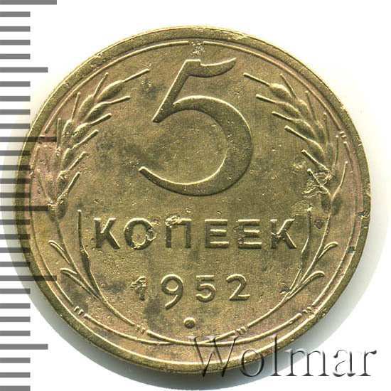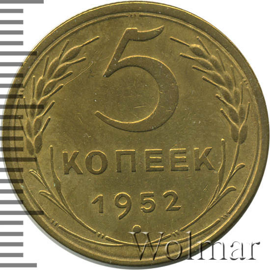 Цена на монету 5 копеек 1952 года на сегодня, 11 марта 2026 года