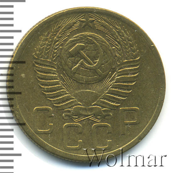 Рядовой пятак в погодовки разменных монет для денежного обращения Советского Союза. Чеканка происходила в городе Ленинград (ныне Санкт - Петербург) на местном монетном дворе (ЛМД). Металл изготовления: немагнитный монетный бронзовый сплав, желтого цвета, соостность (отношение аверса к реверсу) – медальная. Тип 1948 – 1957 годов.