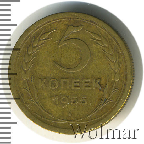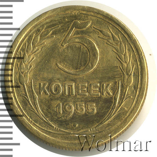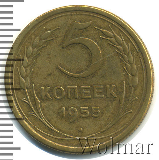 Реверс монеты 5 копеек 1955 года