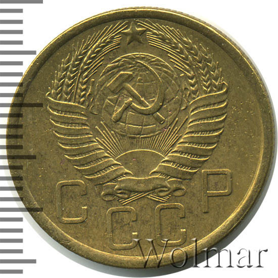 Аверс монеты 5 копеек 1955 года