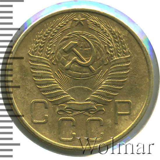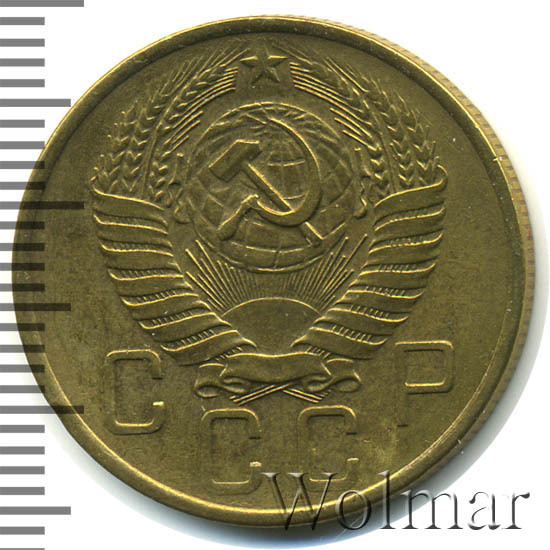Имеет три разновидности (см. описание аверса). С лицевой стороной шт. 2.2 (Ф№102) в десятки раз дороже остальных двух. Подробно ознакомиться с ценой 5 копеек 1957 г., Вы можете во вкладке «стоимость монет», а так же принять участие в текущих аукционах, заглянув во вкладку «активные лоты».