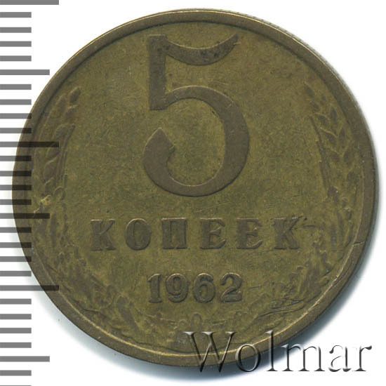 Реверс монеты 5 копеек 1962 года