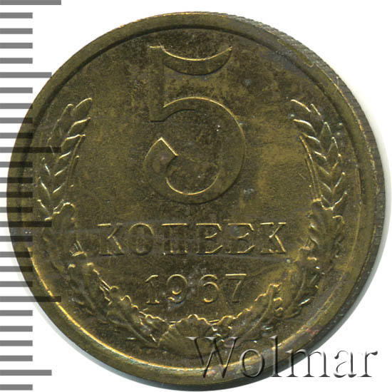 Аверс монеты 5 копеек 1967 года