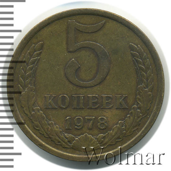 5 копеек 1978 г. имеет две разновидности. С лицевой стороной шт. 2.1 дороже обычной (шт. 3) порядка десяти раз. Более подробно ознакомиться с ценой 5 копеек 1978 года, Вы можете во вкладке "стоимость монет", а так же принять участие в текущих интернет - аукционах, пройдя по вкладке "активные лоты".