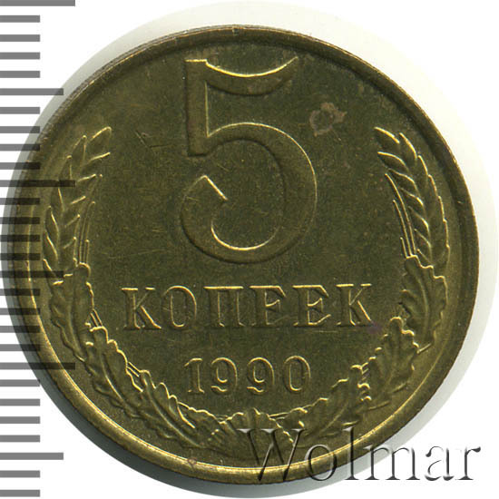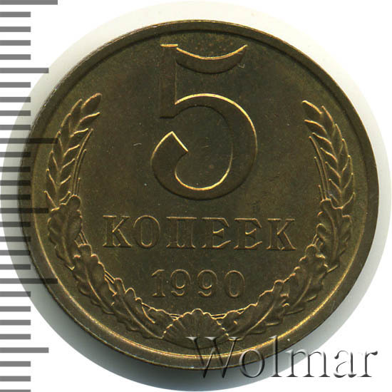 Цена на монету 5 копеек 1990 года на сегодня, 17 марта 2026 года