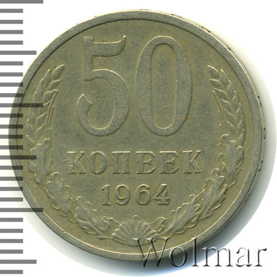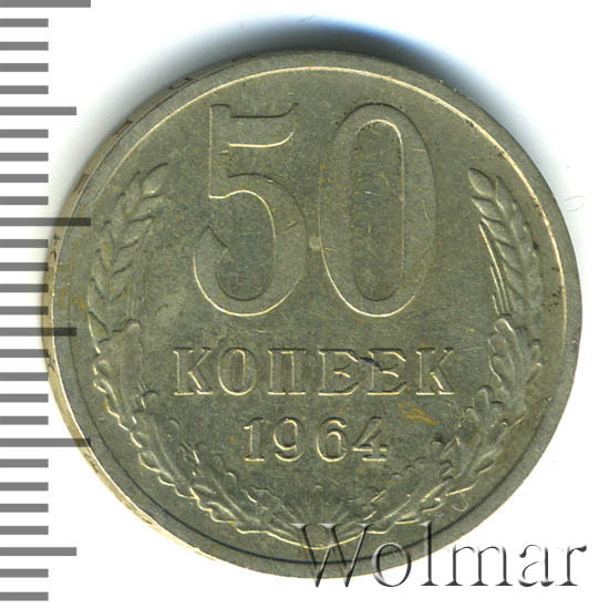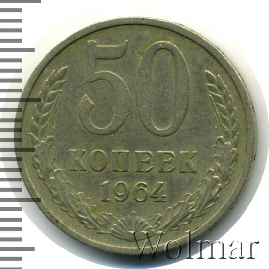 | Гурт | вдавленная надпись «Пятьдесят копеек 1964». |