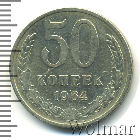 Гурт | вдавленная надпись «Пятьдесят копеек 1964». |