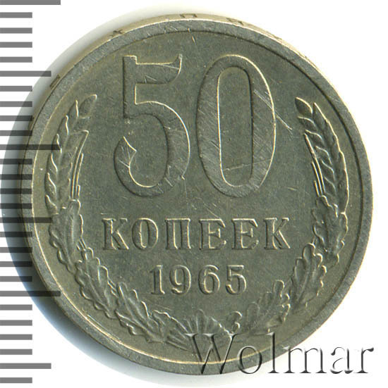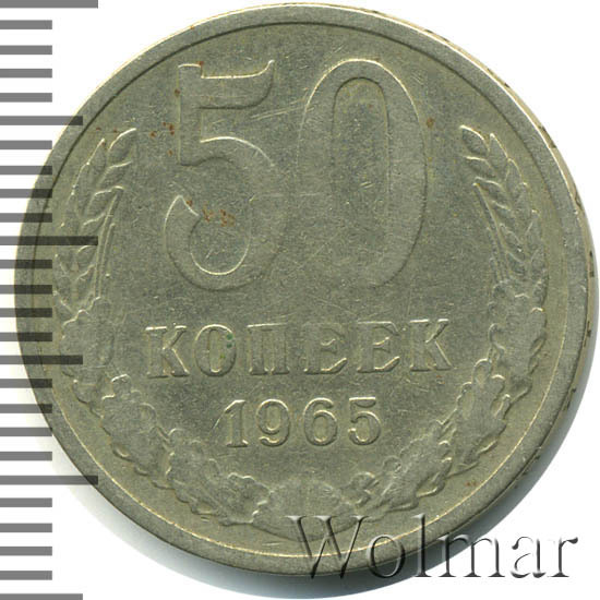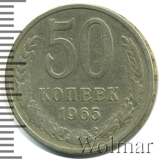 | Гурт | вдавленная надпись «Пятьдесят копеек 1965». |