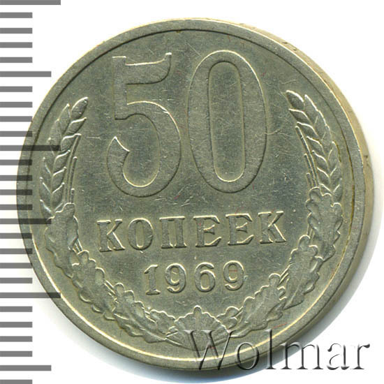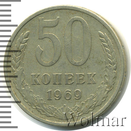 Реверс монеты 50 копеек 1969 года