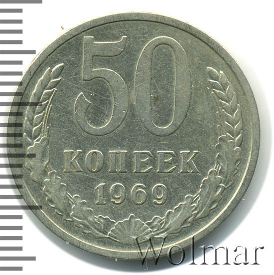 | Гурт | вдавленная надпись «Пятьдесят копеек 1969». |