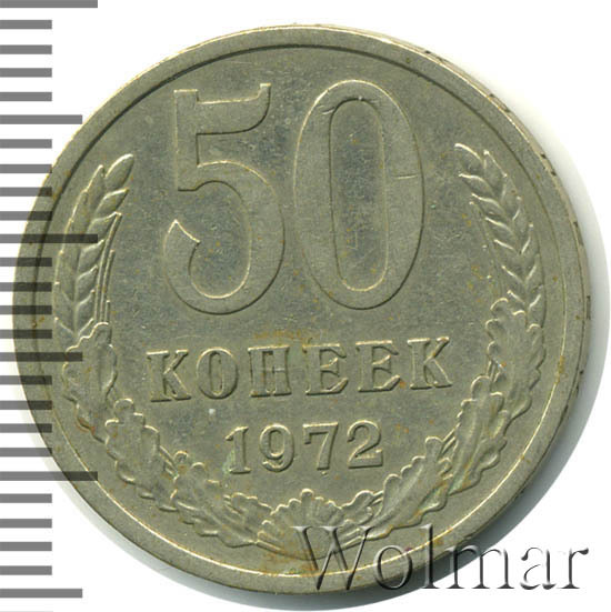 | Гурт | вдавленная надпись «Пятьдесят копеек 1972». |