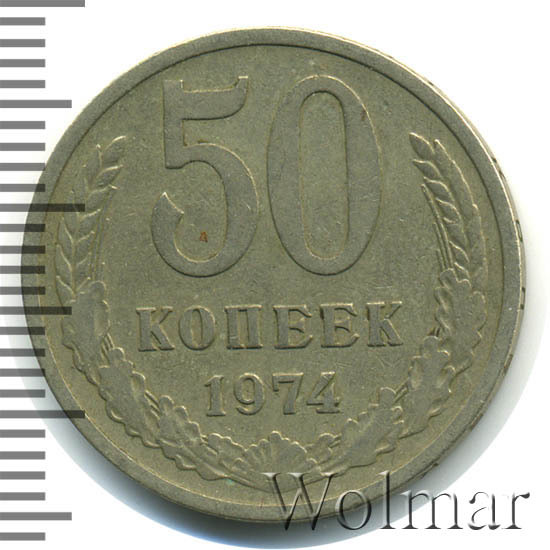 | Гурт | вдавленная надпись «Пятьдесят копеек 1974». |