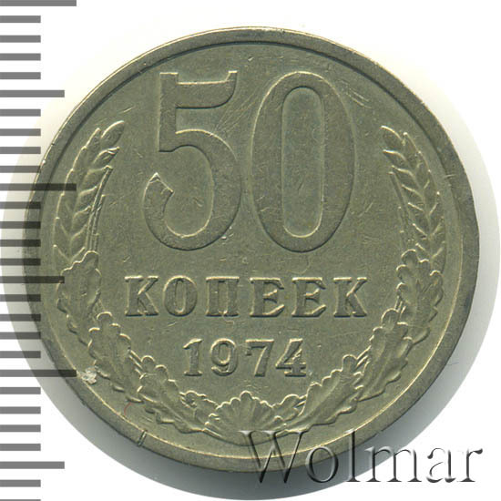 Гурт | вдавленная надпись «Пятьдесят копеек 1974». |