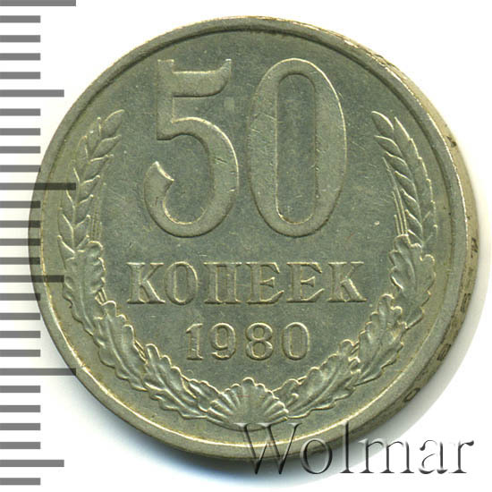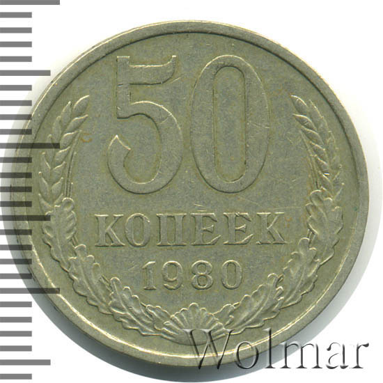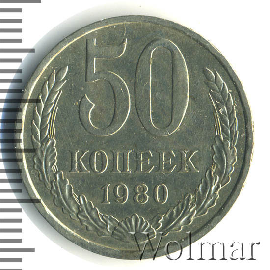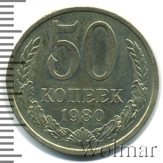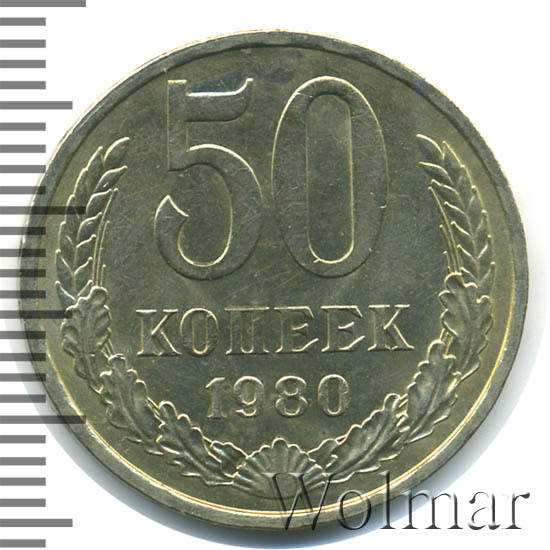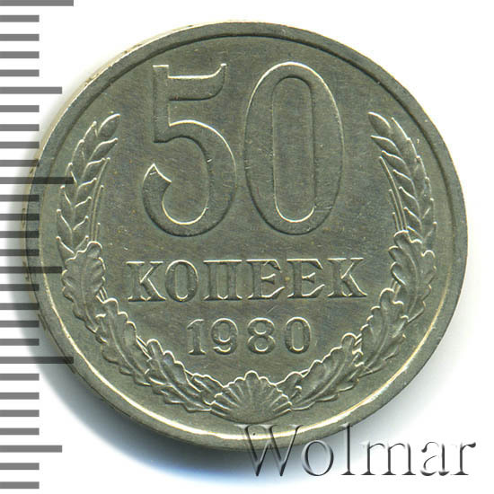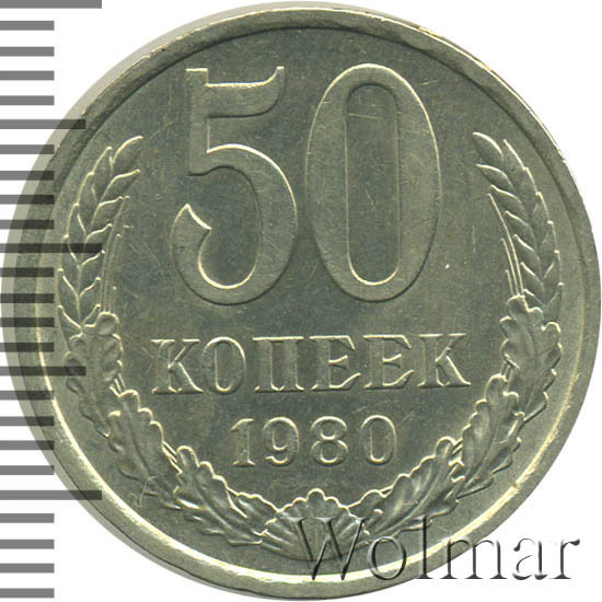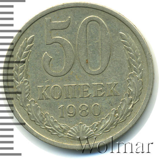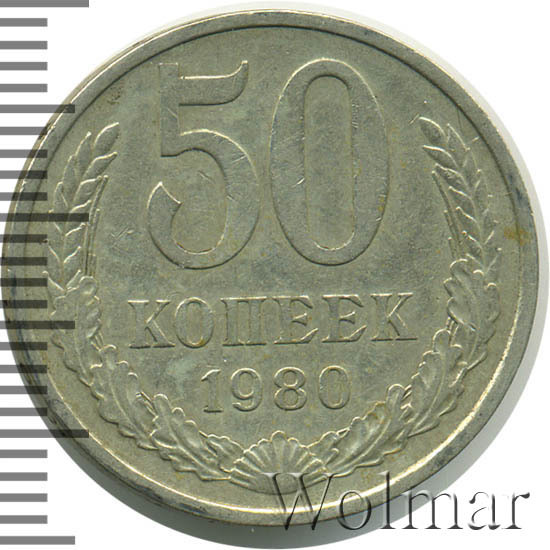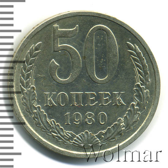 Цена 50 копеек 1980 года не велика. Большую роль, в оценке монеты, играет наличие штемпельного блеска, патины и отсутствие царапин, забоин и прочих следов от нахождения в денежном обороте. Стоимость таких экземпляров в разы превышает цену на монетки в низкой сохранности. Подробно ознакомиться со стоимостью 50 копеек 1980 года, Вы можете во вкладке «стоимость монет», а так же принять участие в текущих аукционах, пройдя по вкладке «активные лоты».