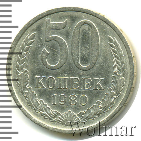 | Гурт | вдавленная надпись «Пятьдесят копеек 1980». |