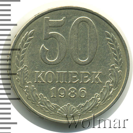 | Гурт | вдавленная надпись «Пятьдесят копеек 1986». |