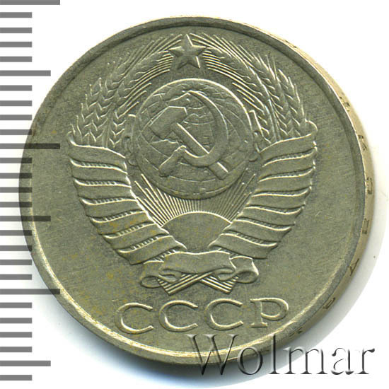 Медно - никелевый "полтинник" 1986 года, чеканился большим тиражом для денежного обращение большой страны, под названием: Союз Советских Социалистических Республик. 50 коп. 1986 г. соответствует стандартам, характерным для 1961 - 1991 годов выпуска. Чеканка этого номинала, как и других, велась на монетных дворах Москвы и Ленинграда. Материал: монетный сплав нейзильбер (медно - никелевый), немагнитный, белого цвета. Отношение сторон монеты друг к другу (0 градусов) - медальное. Штемпельная разновидность (перепутка) - 50 коп. 1986 г. с гуртом (1985), рассматривается в отдельном разделе каталога.