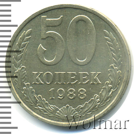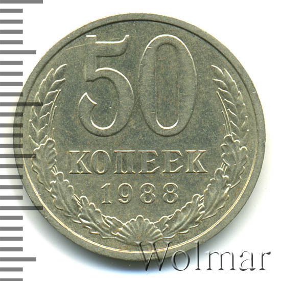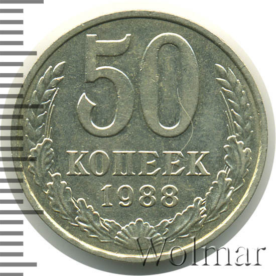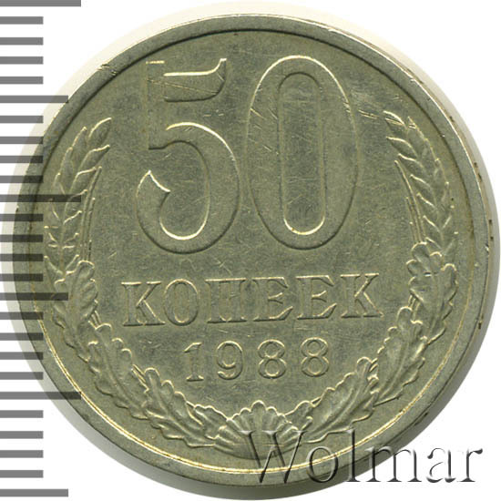 | Гурт | вдавленная надпись «Пятьдесят копеек 1988». |