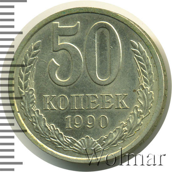 Гурт | вдавленная надпись «Пятьдесят копеек 1990». |