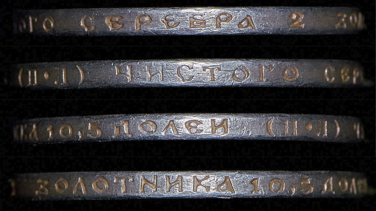 | Гурт | вдавленная надпись «Чистого серебра 2 золотника 10,5 долей (ПЛ).» Гурт 1922 года. |