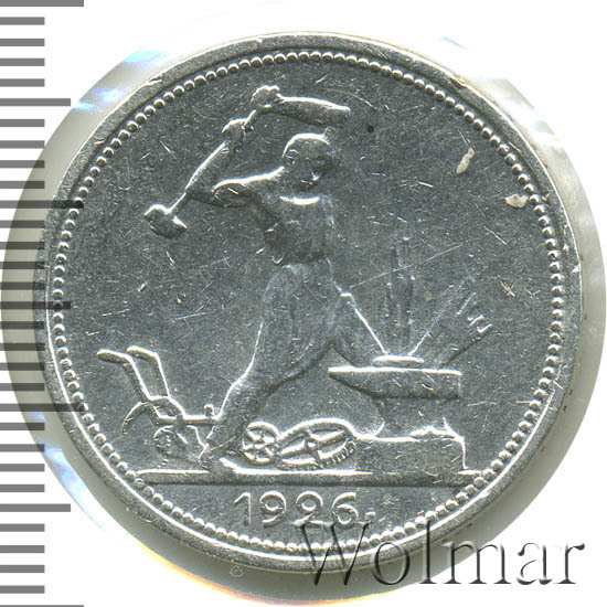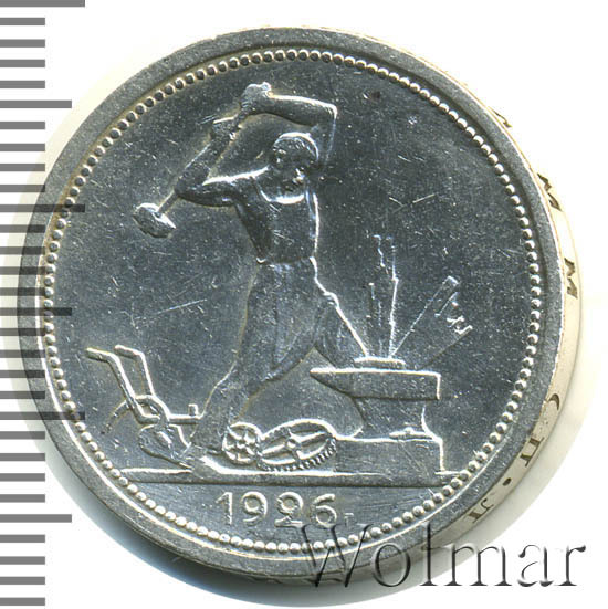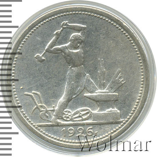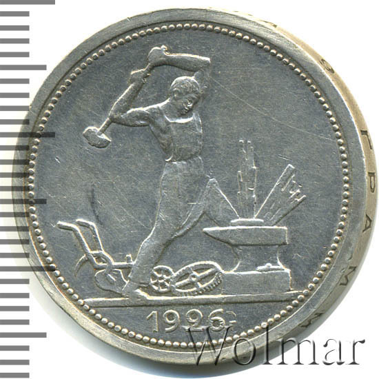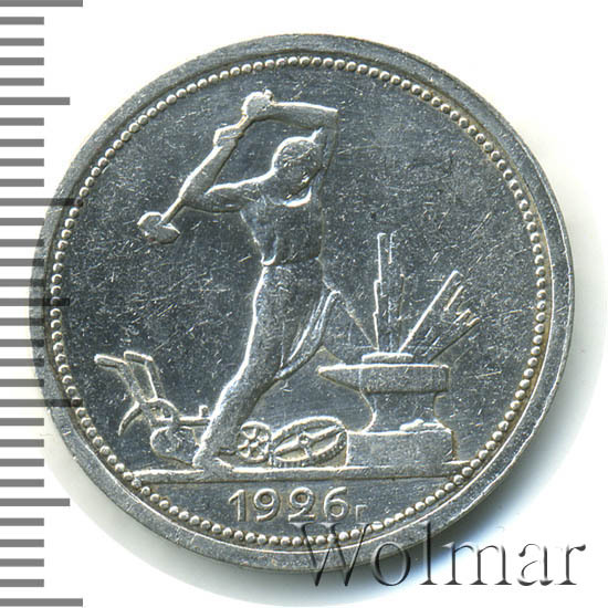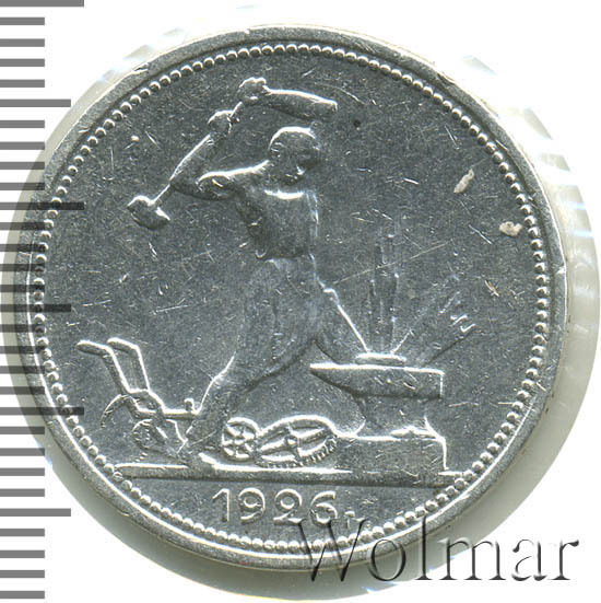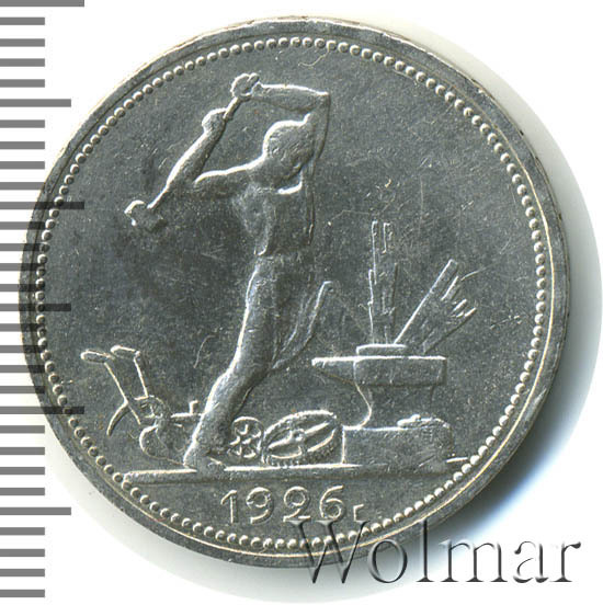 Полтинники 1924 -1927 годов по праву считаются красивыми монетами. Они насыщенны духом времени и проникнуты идеологией молодой советской власти с гегемонией пролетариата и верой в светлое будущее. Заметим, что подобные монеты любимы не только новичками, но и маститыми коллекционерами, а также инвесторами, время от времени спекулирующими на стабильном росте интереса и цен на серебро ранних Советов. Тираж составил около 24 млн. штук, что в 2-3 раза ниже, по сравнению с предшествующими годами, и это немного заметно отражается на цене монет один полтинник 1926 года.