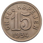 Республика Тува. 15 копеек 1934 года. Аукцион: Numismat.Ru Состояние: VF | 13.12.2024 |