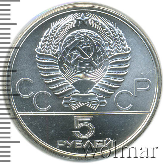 Аверс монеты 5 рублей 1980 года ЛМД городки
