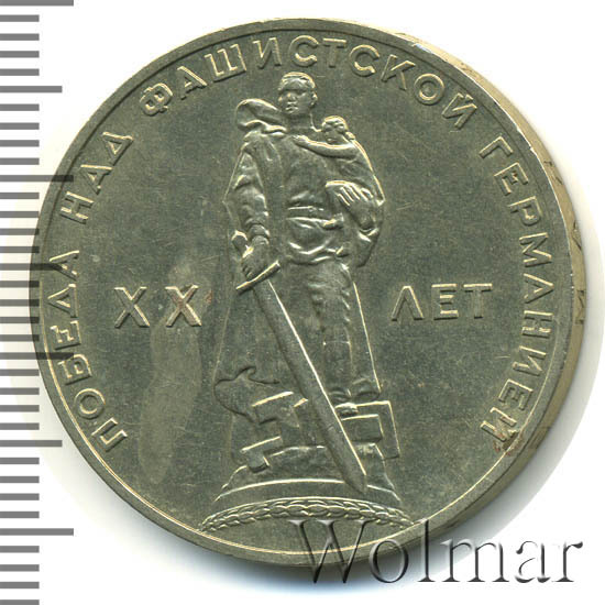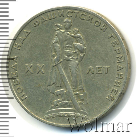 1 рубль. XX лет победы над фашистской Германией Аукцион: Wolmar Standart Состояние: XF+/AU | 22.10.2025 |