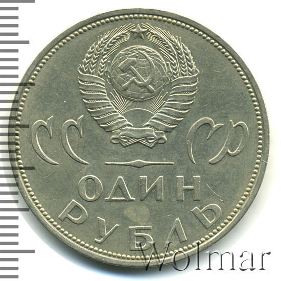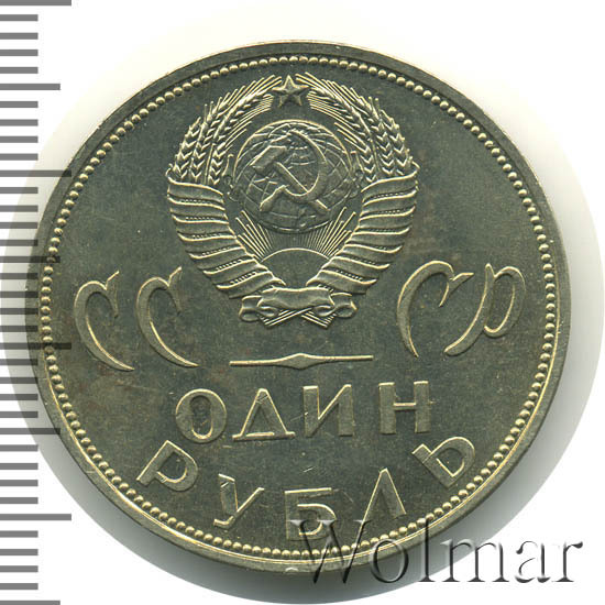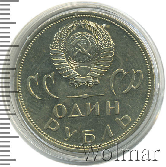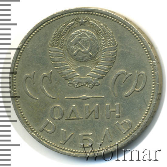 Первый юбилейный рубль Советской власти был выпущен в честь 20-ти летия победы в Великой Отечественной Войне, довольно большим тиражом порядка 60 млн. штук, известны дорогие и редкие монеты, изготовленные улучшенными штемпелями качества Proof и новодельные монеты, отчеканенные в конце 80-х годов. Более подробно ознакомиться с ценой 1 рубля 1965г. вы можете на страницах нашего каталога проходов и цен, отмеченных на торгах самых популярных нумизматических аукционов.