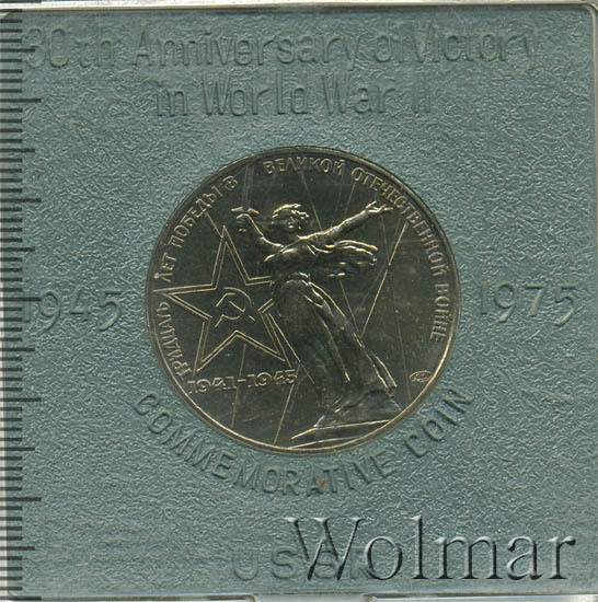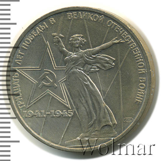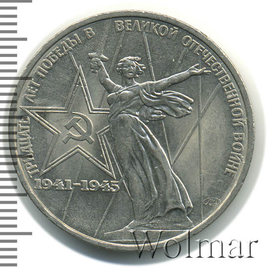 | Гурт | вдавленные надписи «ОДИН РУБЛЬ» и «9 МАЯ 1975», между ними две вдавленные пятиконечные звезды. |