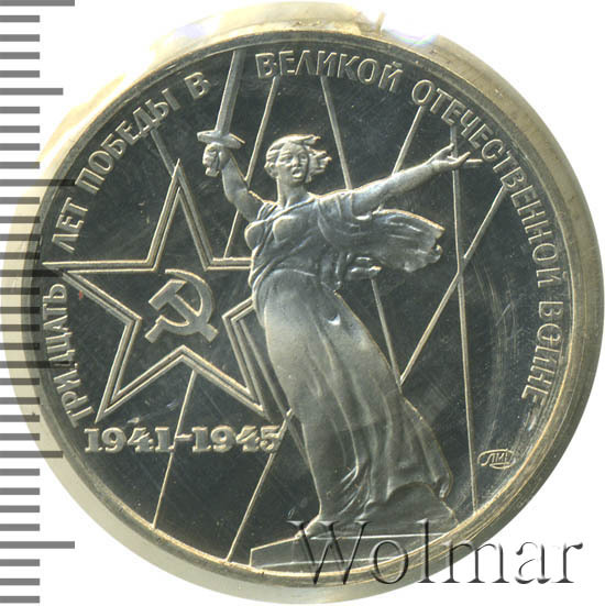 1 рубль. 30 лет Победы в войне 1941-1945. Новоделбуквы ЛМД Аукцион: Wolmar Standart Состояние: Proof (UNC) | 03.12.2025 |