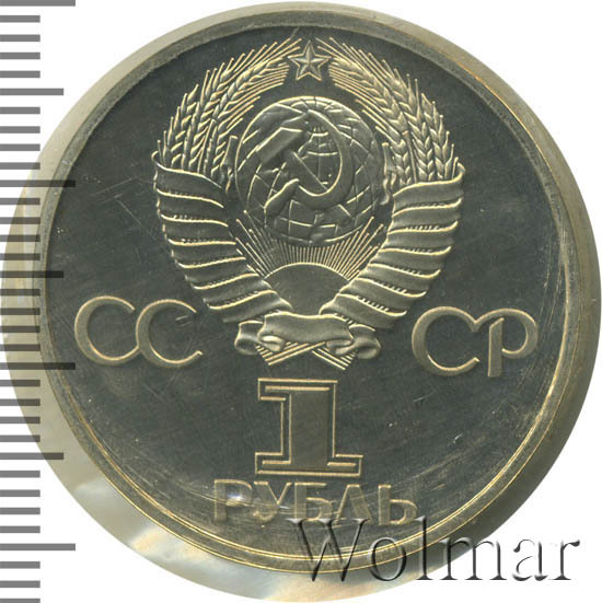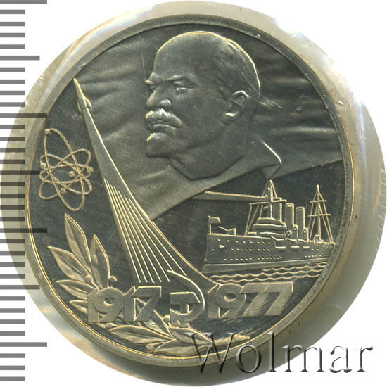 1 рубль 1977г. proof ввиду не больших тиражей, считается не частым, а его стоимость примерно в сто раз превосходит цену обычной юбилейной монеты этого года. Также известны новодельные монеты 1988 года чеканки. Более подробно ознакомиться с ценой памятной монеты вы можете на страницах нашего каталога проходов и цен, отмеченных на торгах самых популярных нумизматических аукционов.