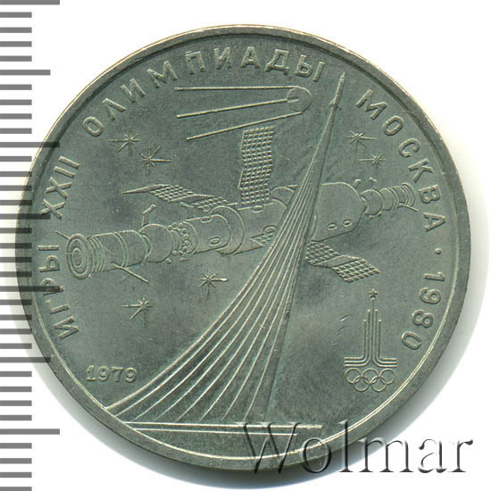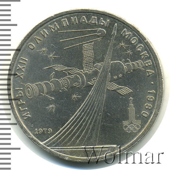 На этой монете, номиналом в один рубль, изображен «Монумент в честь выдающихся достижений советского народа в освоении космического пространства». Он был открыт четвёртого ноября 1967 г. на Проспекте Мира, в десятилетний юбилей запуска первого спутника Земли. Цена на 1 рубль «Монумент» 1979 года не высока, сказывается большой тираж.